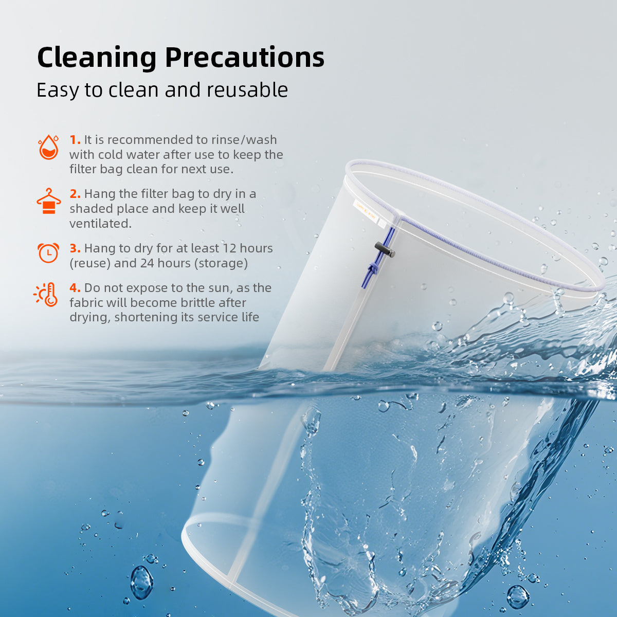 Perfekt for håndverksbrygging, kaffefiltrering, botanisk ekstraksjon og laboratoriebearbeiding. Fjerner effektivt planteavfall, gjær, sediment og andre urenheter.