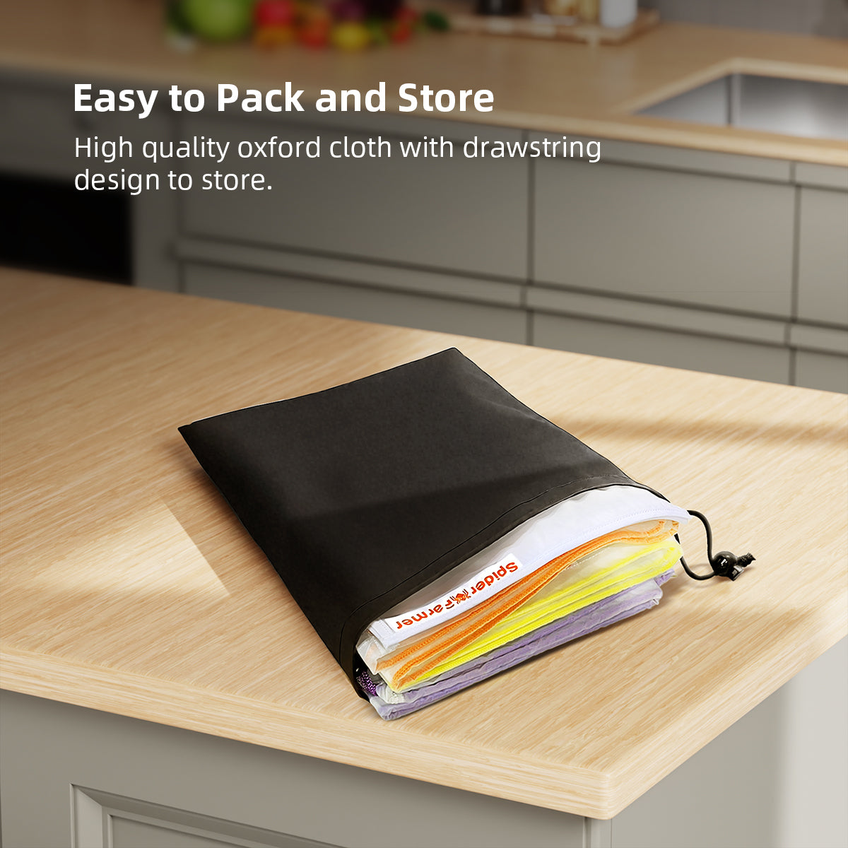 Bred åpning på toppen passer til alle standard 5-gallons bøtter. Hurtigtrekksnor gjør forsegling, fjerning og utskifting av poser raskt og problemfritt.