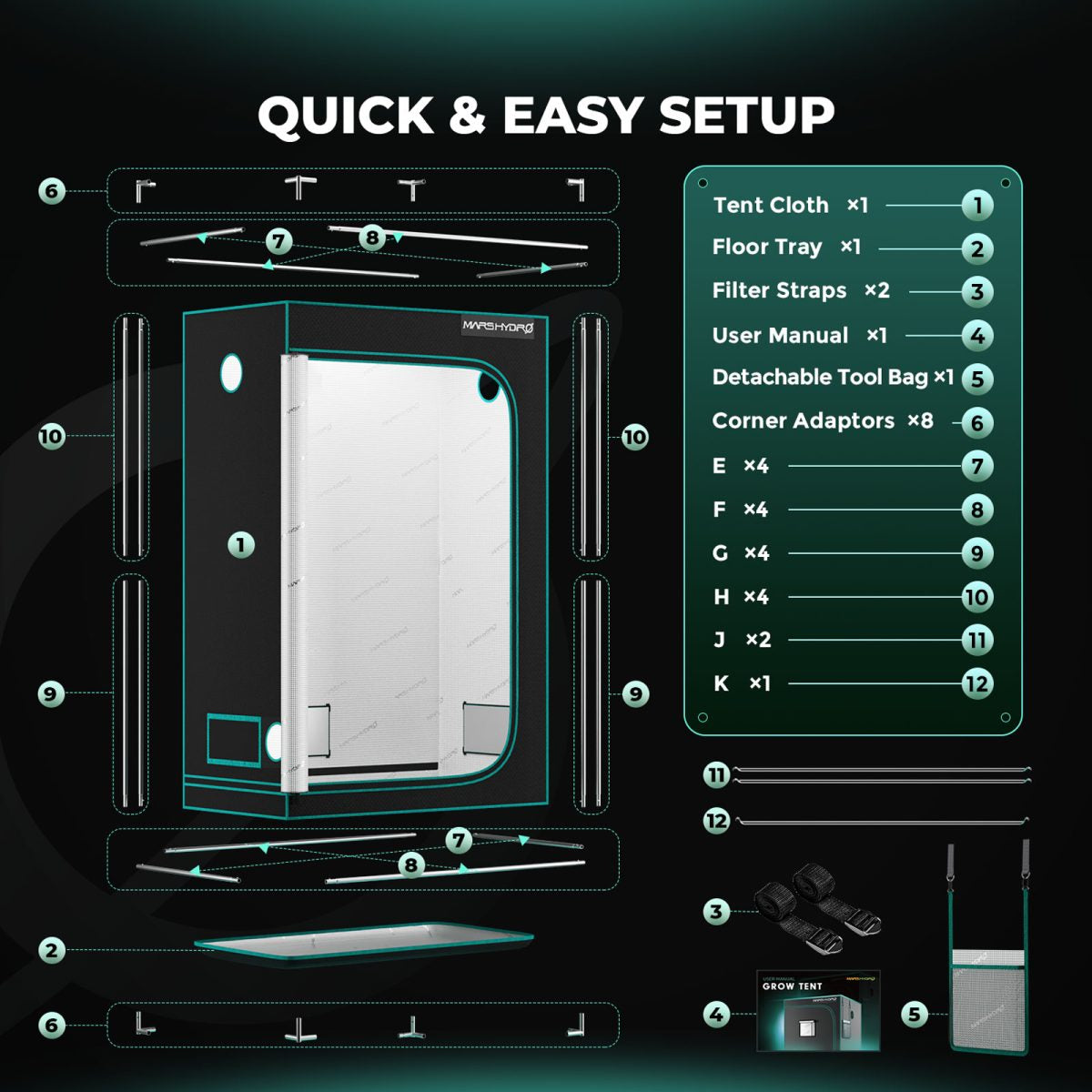 Mars Hydro Dyrkesett | 120x60 Dyrketelt | TSL2000 300W Plantelys | Vifte